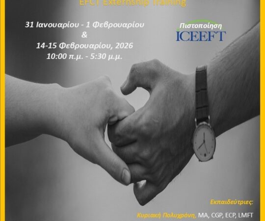 Εκπαίδευση στη Συγκινησιακά Εστιασμένη Θεραπεία Ζεύγους (EFT) Πιστοποιημένη από την ICEEFT | Διοργάνωση: Ελληνικό Δίκτυο EFT