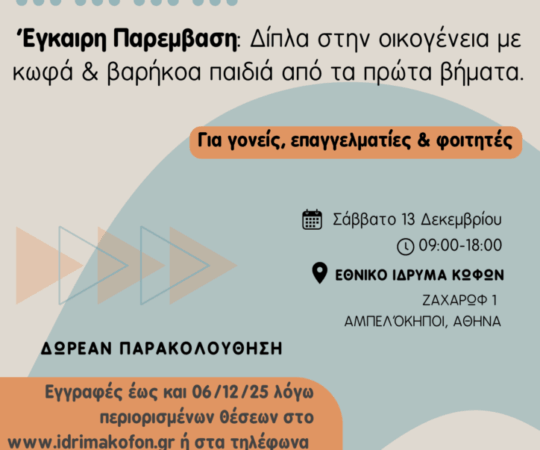 «Έγκαιρη Παρέμβαση: Δίπλα στην οικογένεια με κωφά/βαρήκοα βρέφη και νήπια από τα πρώτα βήματα» • Εθνικό Ίδρυμα Κωφών